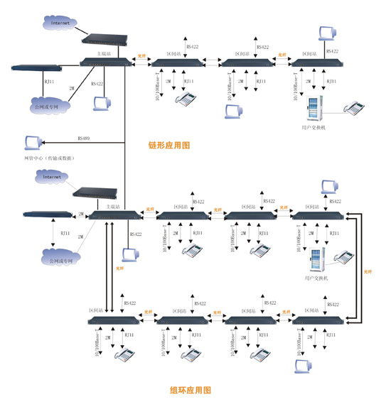 华光高科电子有限公司近期推向市场的新产品系列,它包括主端箱、辅端箱、中继箱和音频扩展箱、2M扩展箱5种主要设备。这些设备的不同组合,可以组成点对点、链型、环型不同的网络拓扑结构,连接环型网络时,具有自愈保护功能(保护倒换时间小于50ms)。能实现 美国看世界杯 2M、10/100M以太网、2/4线音频、FXO和FXS 等多种业务接口的综合传输。这些设备都采用19英寸1U 标准机箱,统一网管,易于安装,便于维护,并且具有完善的网管告警功能和环回测试功能,可用于广电、各电信运营商的公用网和公安、部队、电力、铁路公路交通、金融、政府及具有分支机构的企事业单位的专用网。特别是对于10/100M以太网接口要求较多、可靠性高、有自愈保护功能、以太网传输通道需要相互独立的应用场合,具有明显的优势。