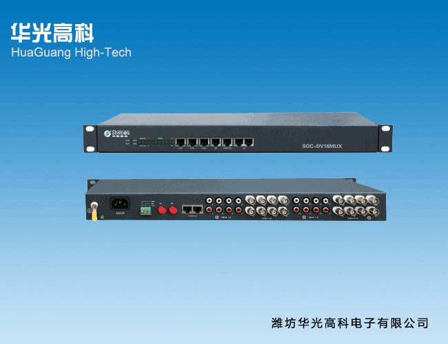 HG-DV16MUX多业务视频光传输平台是华光高科公司根据市场需求,适时开发出基于视频传输的多业务光传输平台,采用国际最先进的数码视频高速传输技术,将同时把16路视频,16路音频,2路E1接口,4路数据(RS485/RS422/RS232 /),8路开关量、8路电话(FXS/FSO/EM/载波/磁石,最多克扩60路电话)、多路10M/100M/1000M以太网等等接口在单芯或双芯光纤上无失真、高质量传输。